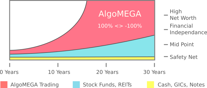 AlgoMEGA manages a high risk, high potential investment option. It compliments a safety net and other low risk investments to potentially capture large gains.